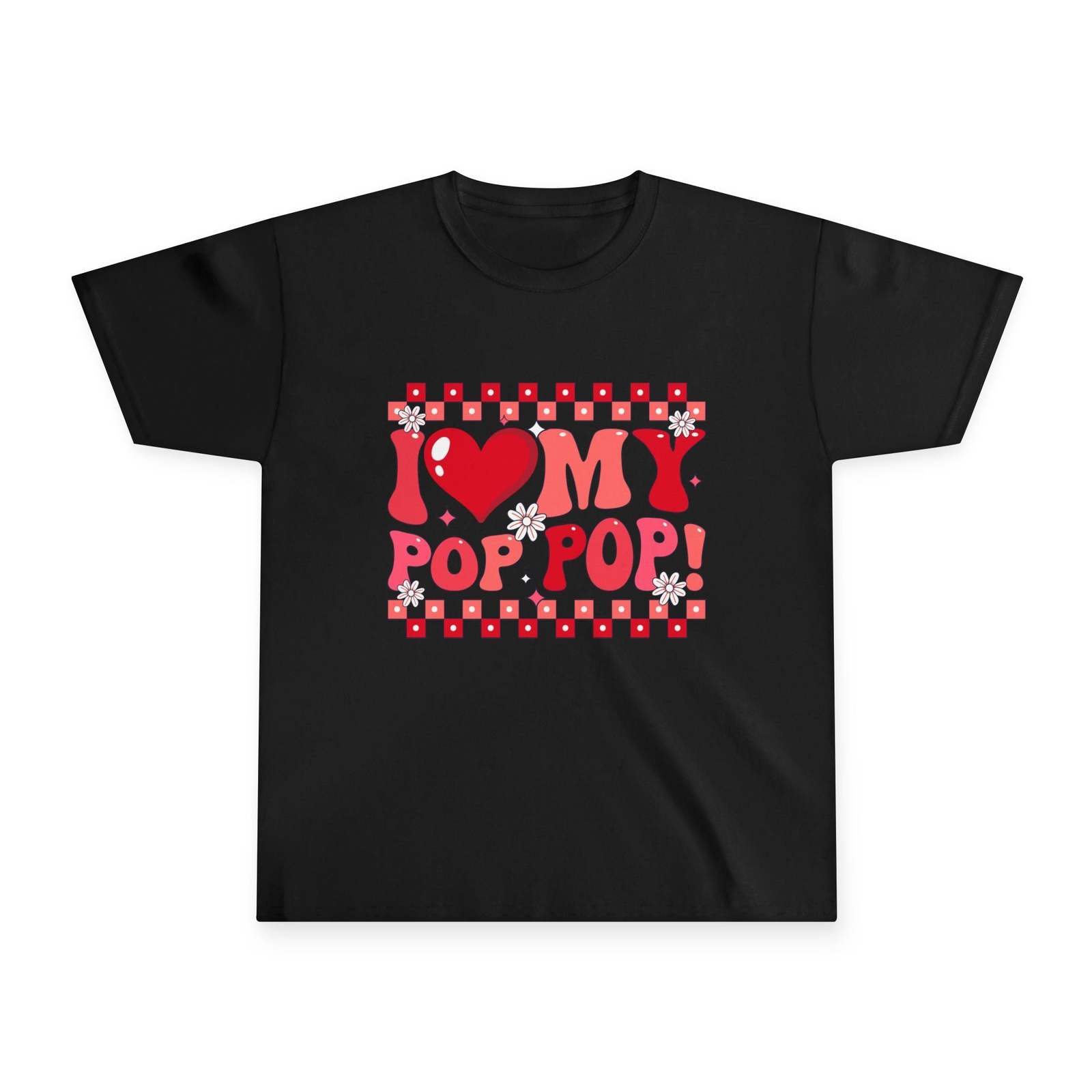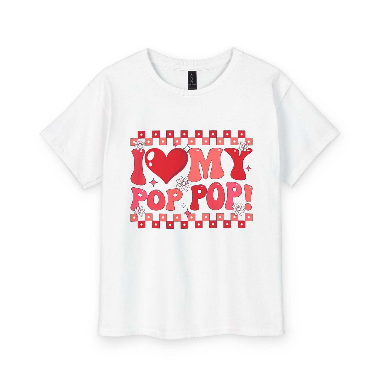 The "I Love My Pop Pop T-Shirt" is a graphic print shirt made from 100% cotton, ideal for both kids and adults alike. With a round neck and short sleeves, this basic style t-shirt is perfect for showing off your love for your Pop Pop. Its unisex design makes it suitable for anyone looking to express their affection in a stylish and comfortable way.