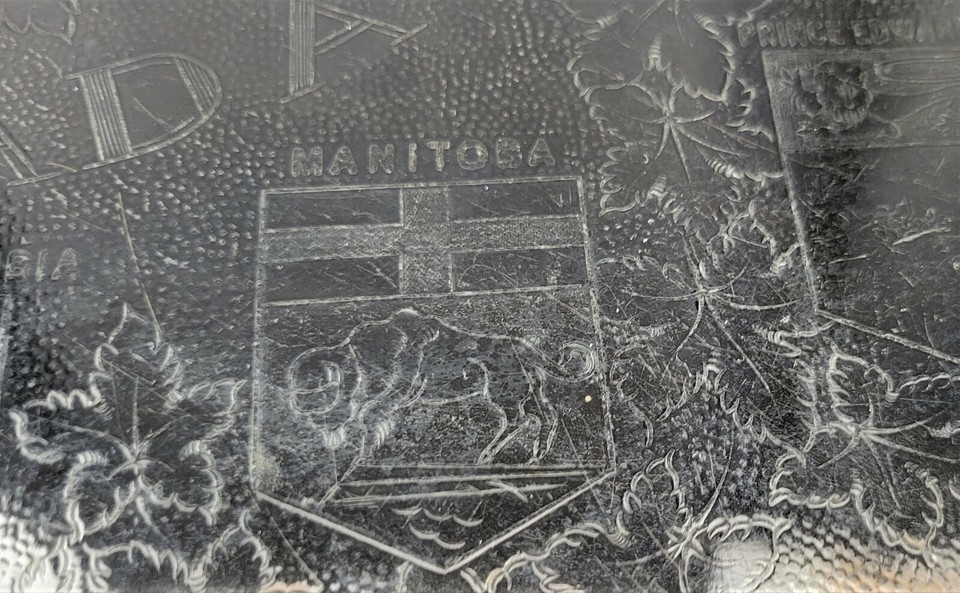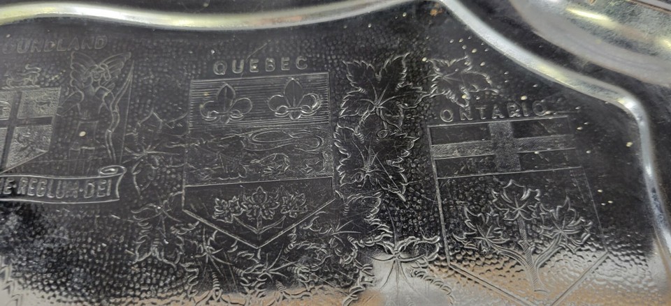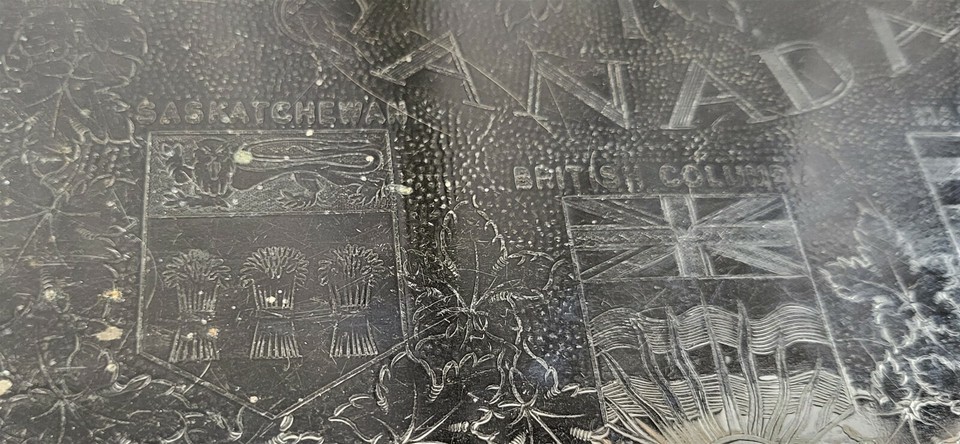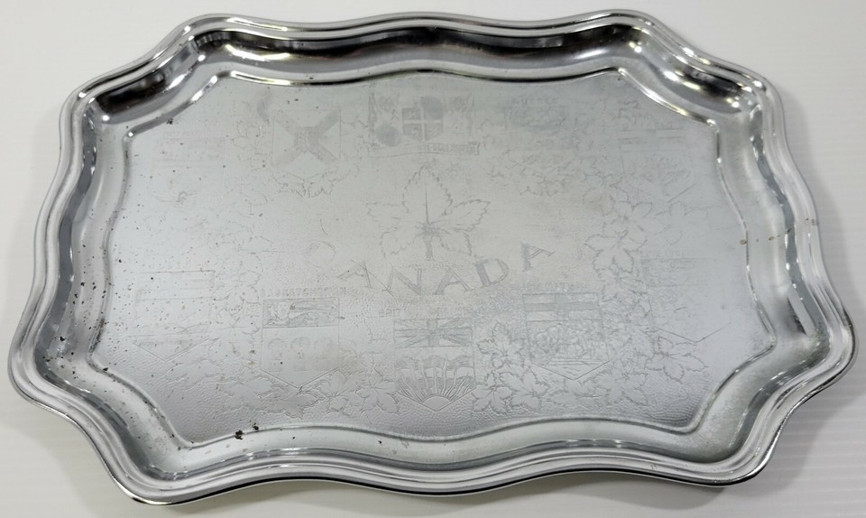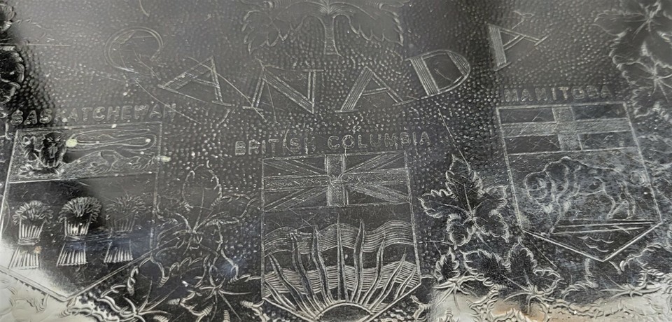 - I) Vintage Etched Canada Souvenir Silver Plate Serving Tray 16" x 12"