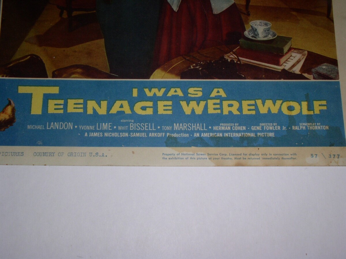 - I Was A Teenage Werewolf Theater Lobby Card Vintage 1957 14"X11" 57/377