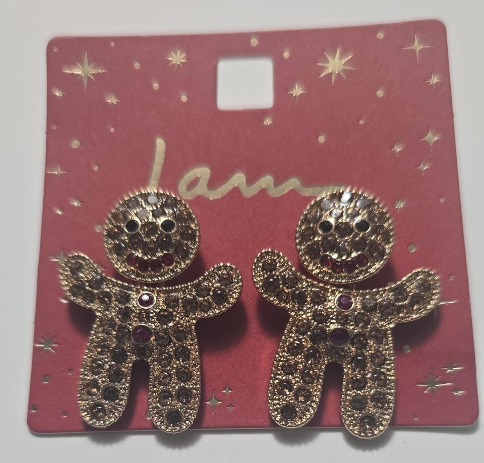 - I am Christmas Dangling Gingerbread Rhinestone Earrings