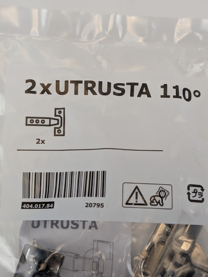 - IKEA UTRUSTA Hinge 110° Degree 2 Pieces 402.826.58 New