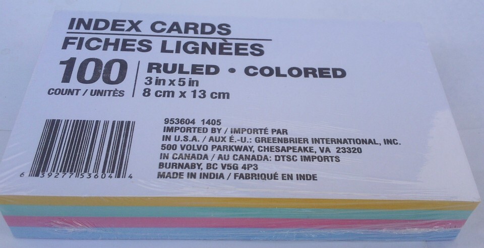 - INDEX CARDS RULED Colored Blue Red Green Yellow 3 x 5 Inches - 100 Count/Pack