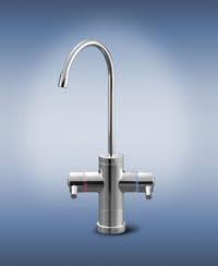 Product description: Experience premium filtered water at your fingertips with the Tomlinson 600PBRHC Hot Cold Water Faucet. This sophisticated brushed stainless steel faucet delivers steaming hot water for instant beverages and refreshing cold filtered water, eliminating kettles and water pitchers. Engineered with ceramic disk technology, this faucet ensures smooth, drip-free operation. The 12-inch high-arc design with 360 swivel provides exceptional reach, while the self-closing hot handle prevents accidental scalding. Compatible with most instant hot water dispensers and RO systems (except InSinkErator), this versatile faucet adapts to your water filtration setup. Built to the highest standards, this NSF-certified faucet meets lead-free requirements and ADA guidelines. The contemporary design handles up to 190F temperatures and 125 PSI pressure. Installation is simplified with pre-installed 30" tubing and complete hardware. Whether upgrading your kitchen, installing an RO system, or seeking filtered water access, this professional-grade faucet delivers exceptional performance backed by a 2-year warranty. Perfect for modern kitchens, offices, and RVs.