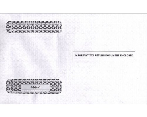 Product description: Item Number TF44441 Ensure immediate attention. Double-window envelopes come pre-printed with the statement "Important Tax Return Document Enclosed" 24 pound paper stock 9 x 5 5/8 W-2 4-Up Horizontal Laser Envelope. Gum seal flap Measurements: Top Window: 3/4 x 3 3/8 - 3/8 from left, 4 1/4 from bottom Bottom Window: 7/8 x 3 3/8 - 3/8 from left, 5/8 from bottom IRS Approved W2 Tax Form Envelopes