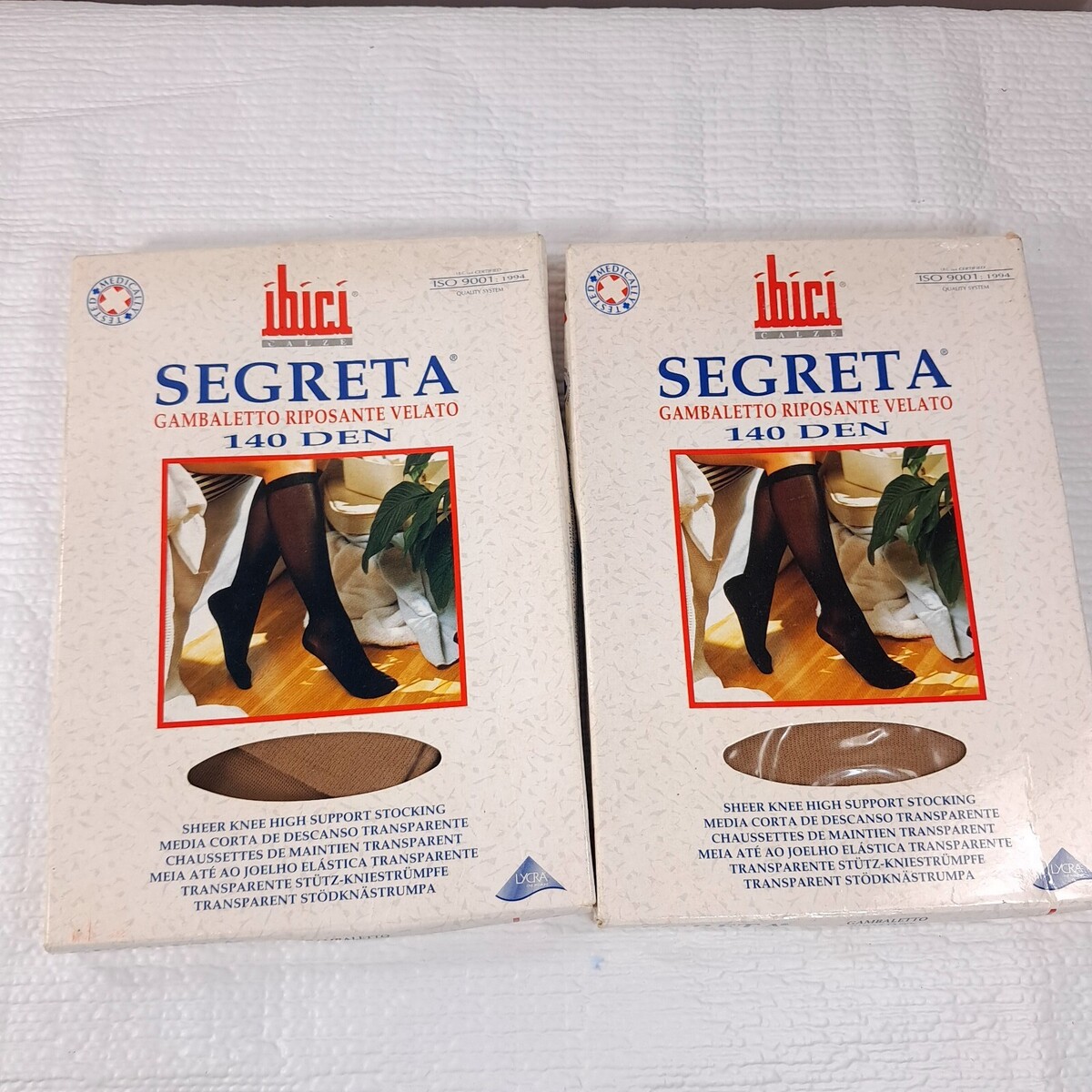 - Ibici Segreta 140 Den set 2 sz 4 tan brown Sheer Knee High Support stockings