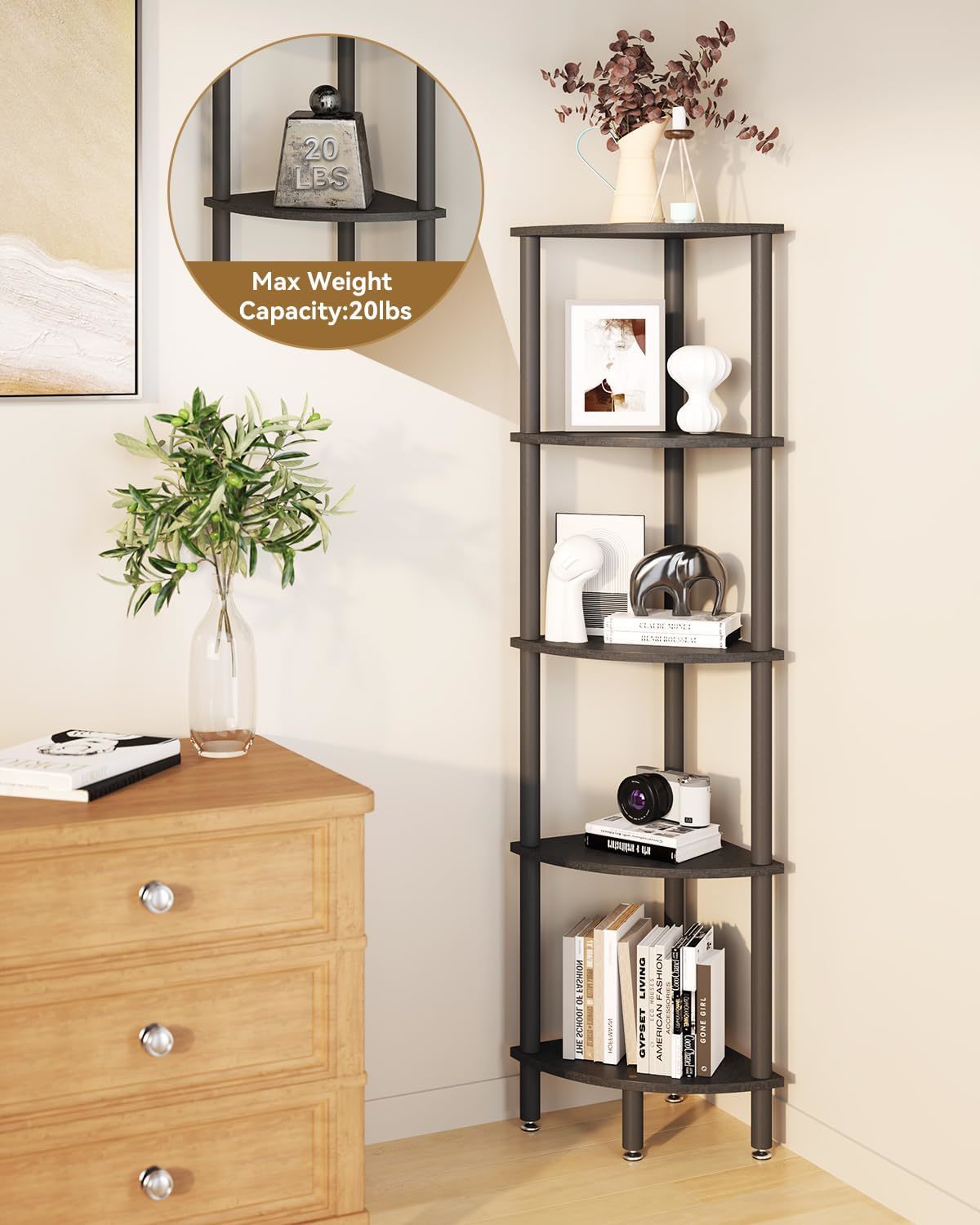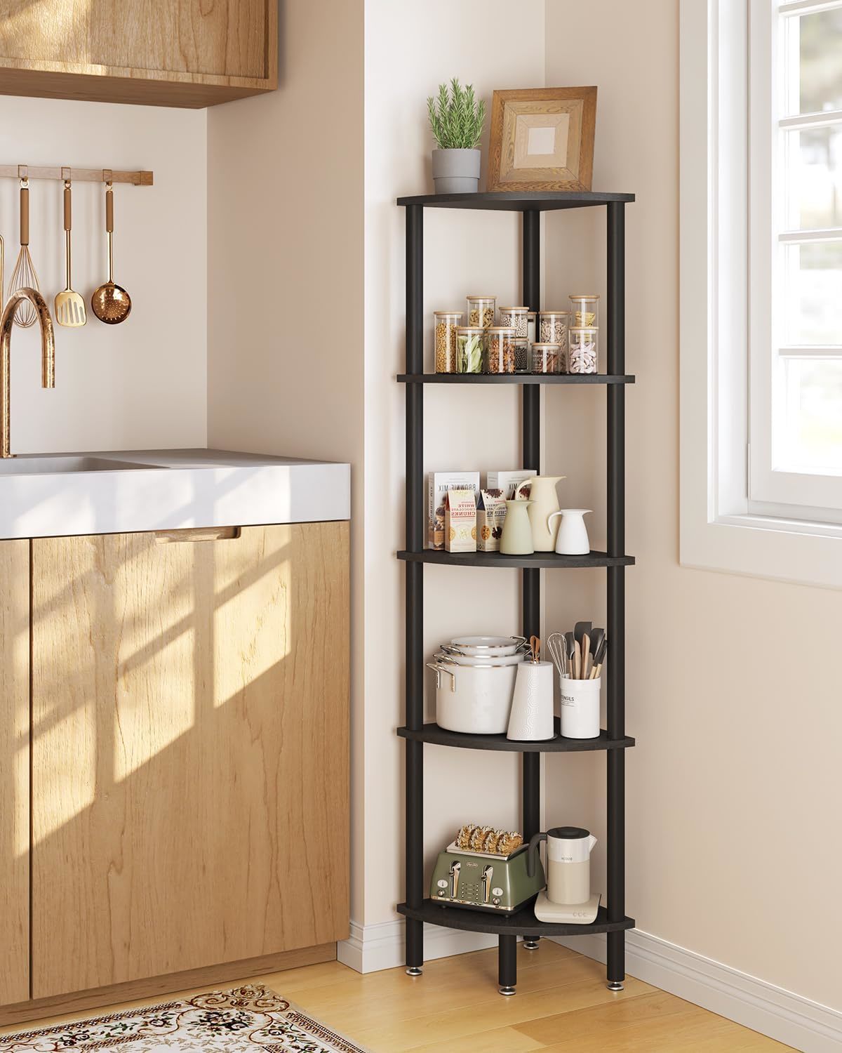 - Ibuyke 5 Tier Corner Shelf Stand,Industrial Corner Display, Black Wbc010B