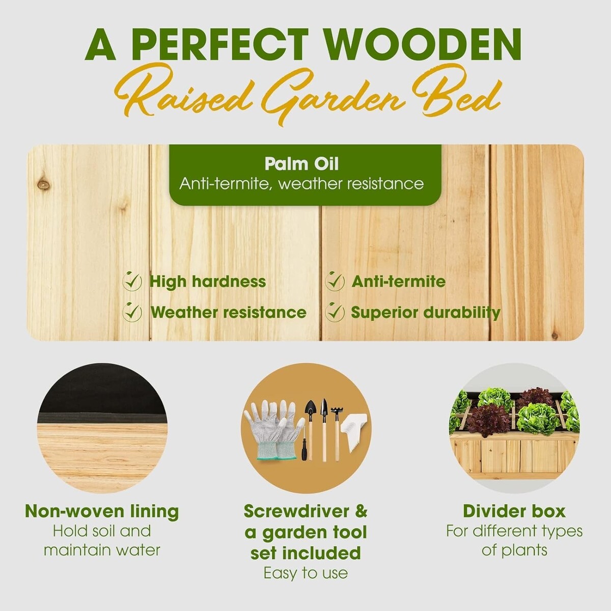 BEAUTIFULLY CRAFTED FIR WOOD: Our wood raised garden bed is made of solid fir wood that is water resistant and long lasting; With stunning wood grain and a durable wax oil finish, our raised garden beds outdoor adds a beautiful accent to your outdoor space