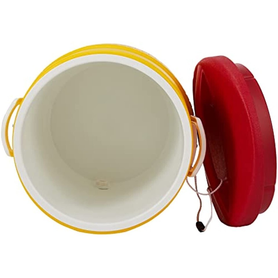 Product description Igloo 4101 - Beverage Cooler, Insulated, 10 Gallons From the Manufacturer Improved, heavy-duty side handles mounted with stainless steel screws into ABS plastic back-up plate. Cup dispenser bracket. Plastic, recessed, drip-proof, pushbutton spigot. Wide mouth, pressure fit lid has molded-in contour handle and keeper cord. Safety color for easy identification, will not fade in direct sunlight. All plastic, rustproof construction. Sanitary white liner. Foamed-in-place Ultratherm insulation. Drinking Water imprint meets OSHA requirements.