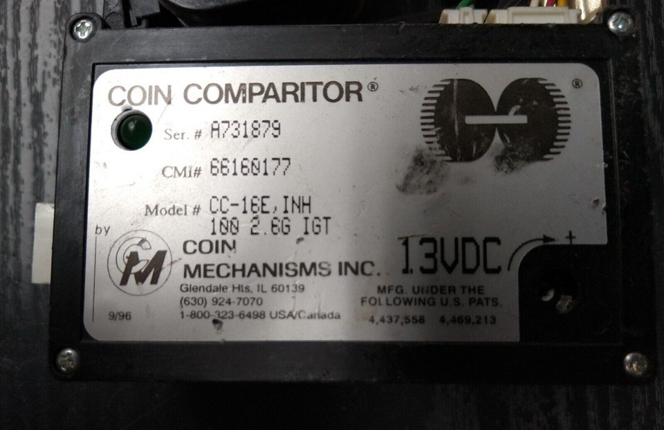 IGT S2000 Slot Machine used CC-16E INH .100 2.6G 13VDC coin comparitor. May work in some other slot machines and arcade games.