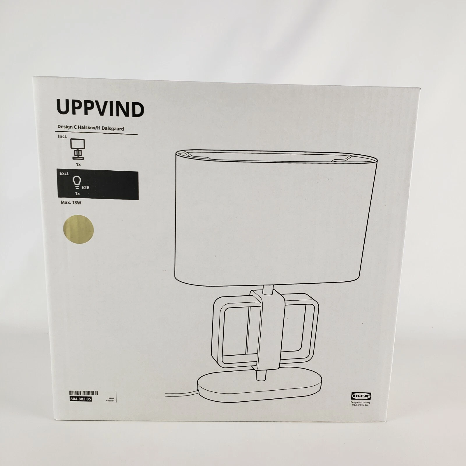 Ikea UPPVIND 19? brass-plated and white table lamp with modern oval shade, new in box.