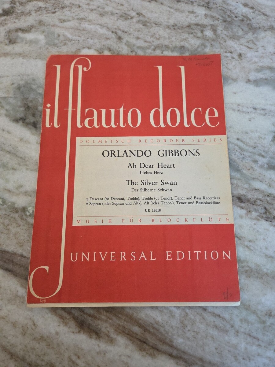 Il Flauto Dolce Orlando Gibbons Ah Dear Heart Silver Swan recorder sheet music. Condition is Very Good. Shipped with USPS First Class.
