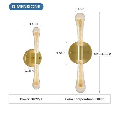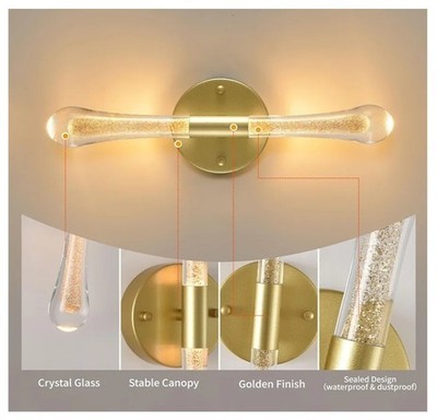 - Illus 6W 4000K LED Gold Wall Sconce, Crystal Vanity Light with Bubble Crystal