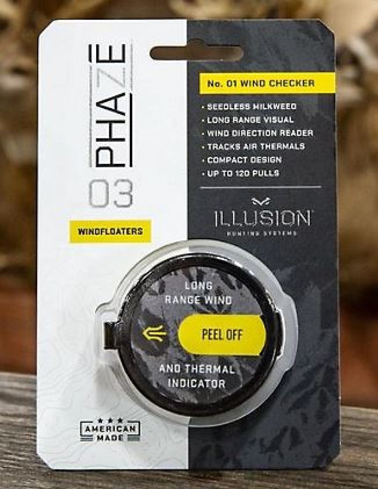 PhaZe 3 Windflaoters are the most accurate long range Wind and Thermal indicators on the market! When it comes to hunting big game, proper scent control and understanding how scent travels though terrain at a distance is crucial to success. PhaZe Windflaoters accurately show your invisible downwind scent path, exposing updrafts, downdrafts and thermals that Powder and Smoke based products simply can't reach. Long Range. Reads wind and thermals further than Powder or Smoke. Long Lasting. Approximately 75 uses Easy Carry. Small and compact, fits in your pocket or pack Feather-light, natural fibers that follow wind currents. Effective use from ground level or in a tree stand. Works in ALL wind speeds. Made in the USA. For optimal scent control results, use PhaZe 3 Windfloaters in conjunction with the entire PhaZe Body Odor System!