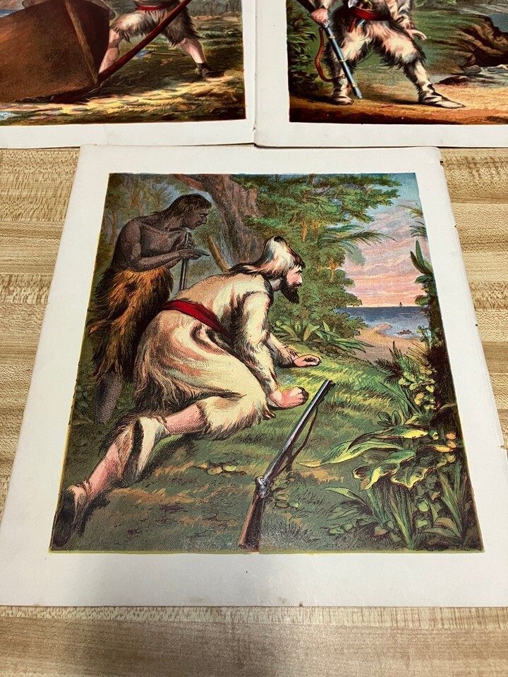 - Illustrated Robinson Crusoe old book pages vintage art book prints