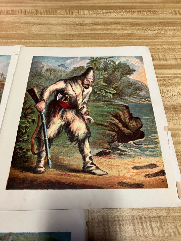 Illustrated Robinson Crusoe old book pages vintage art book prints