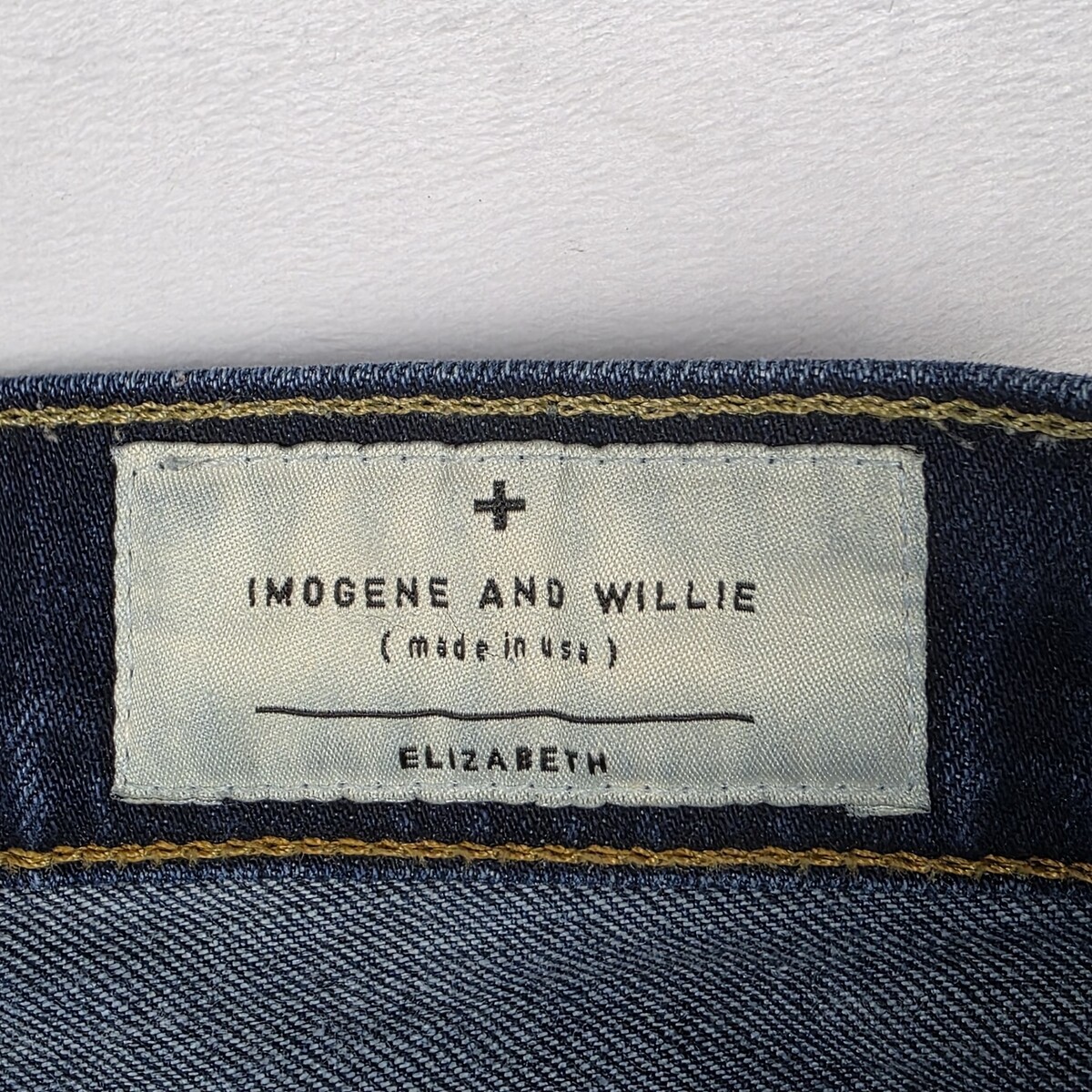 The product is a pair of Imogene + Willie Women's Size 26 Elizabeth Skinny Jeans in a Dark Wash High Rise Blue. These jeans feature a solid pattern with a high-rise waist and a skinny fit. Made of a blend of polyester, spandex, and cotton denim, they offer comfort and stretch. The garment care is machine washable, making them easy to care for. The jeans also have a 5-pocket design with a coin pocket and are accented with buttons, zippers, and the brand's logo. Made in the United States, these jeans are a stylish and versatile addition to any woman's wardrobe.