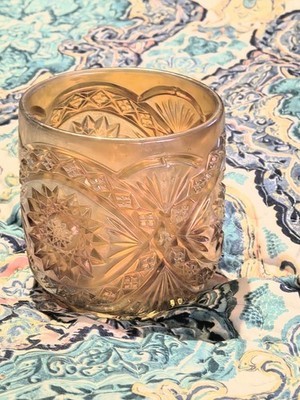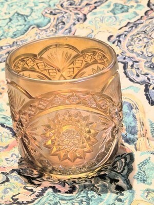 - Imperial Marigold Carnival Glass Hobstar Canister Jar 4" Stunning Amber Oval