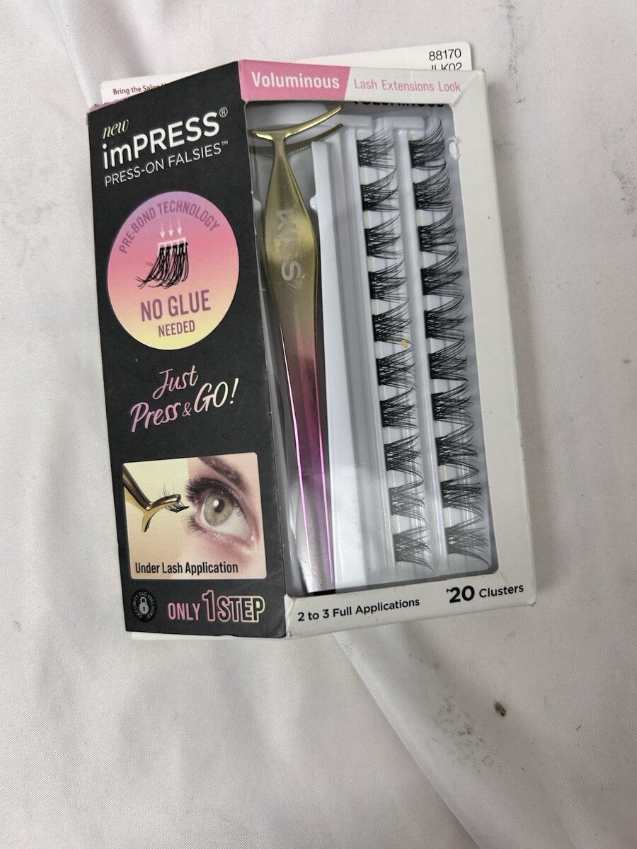 - Impress Press-on False Eyelash Extensions 2pk VOLUMINOUS &NATURAL 20 Clusters Ea