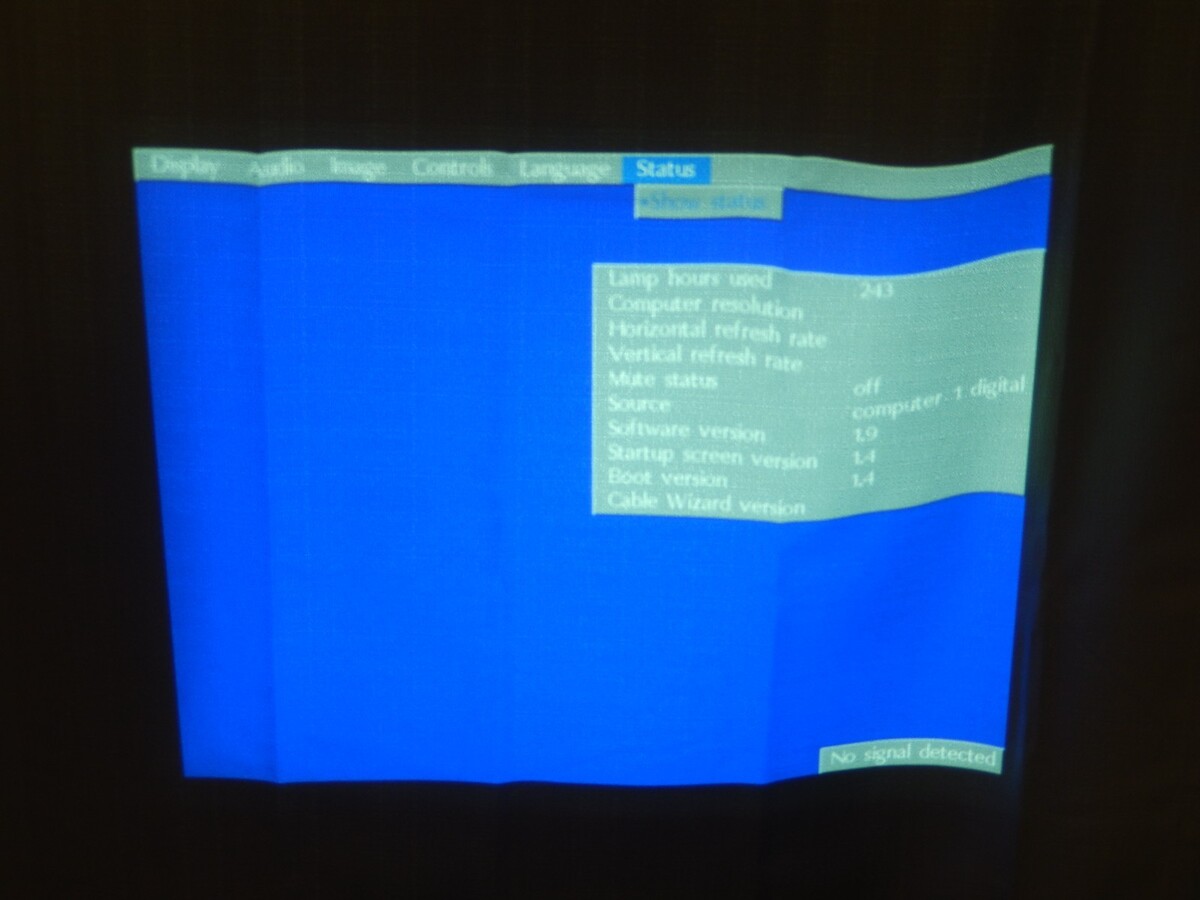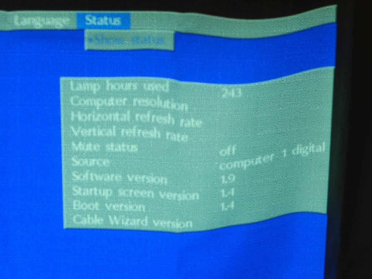 Low Lamp Usage: The critical factor for any projector is lamp life. The status screen shows a remarkably low 243 Lamp Hours Used (See photo: DSCN4430.jpg), indicating significant life remaining for the lamp.