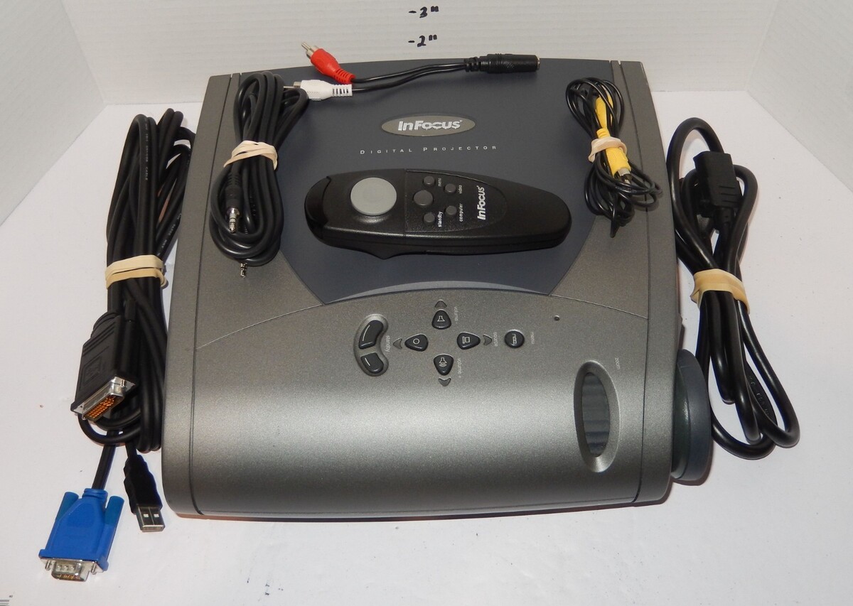 This listing is for a well-maintained and fully functional InFocus LP350 DLP Digital Projector. This projector is an excellent choice for presentations, classic gaming, or a secondary home theater setup. It comes complete with its original carrying case and all essential cables/remote, making it truly ready to plug and play!