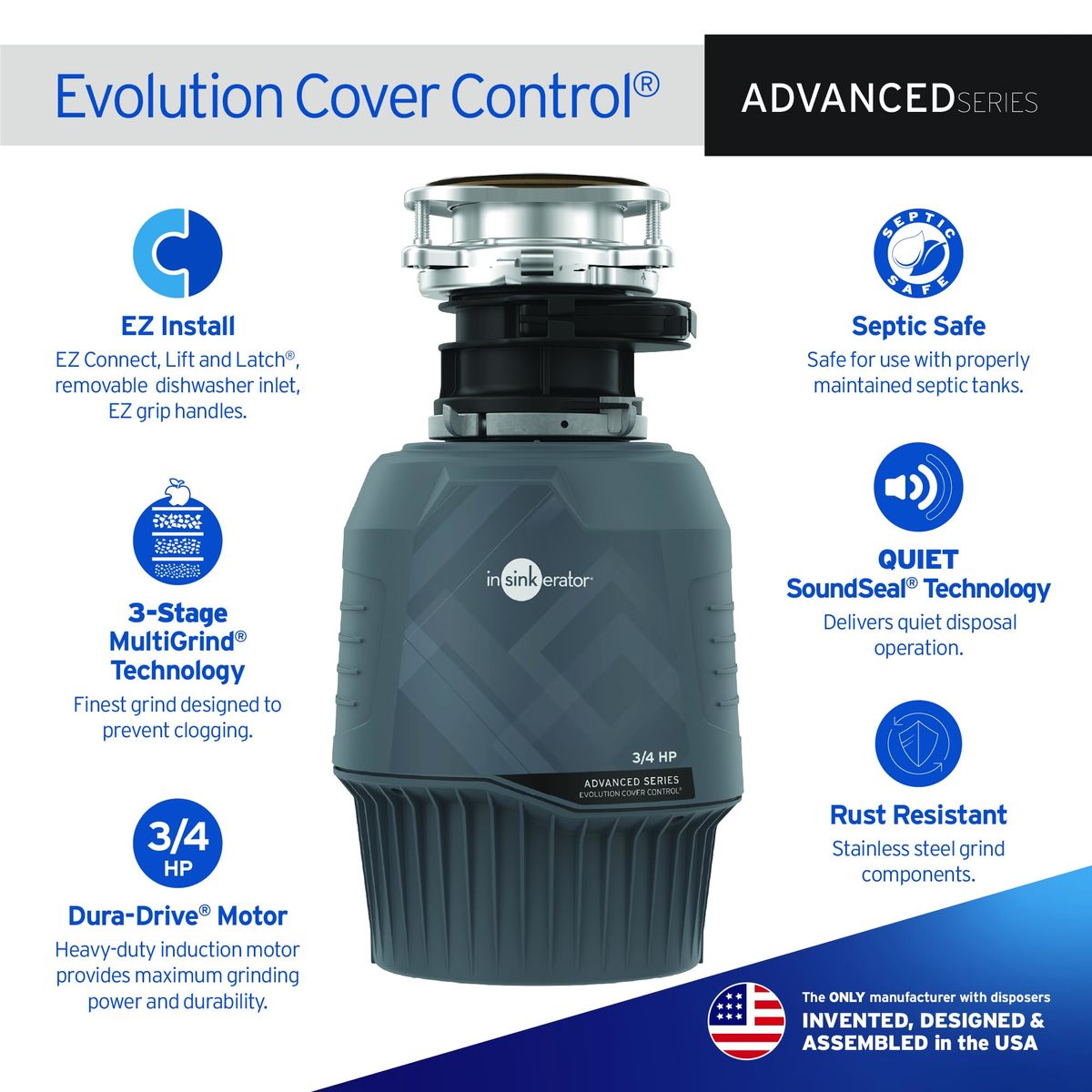 - InSinkErator Evolution Cover Control 3/4 HP Garbage Disposal, Advanced Series EZ
