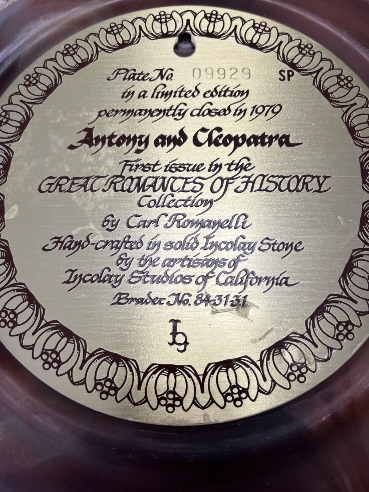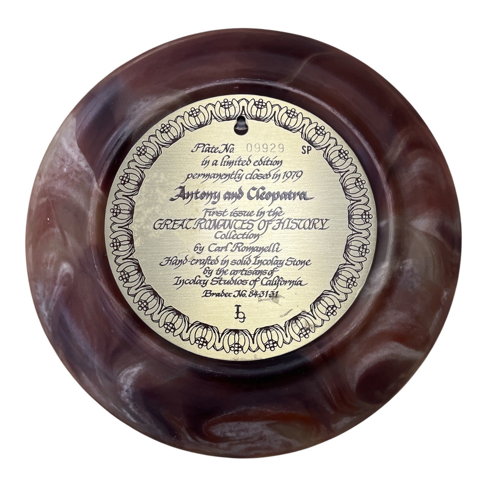 Incolay Studios 1979 ?Antony and Cleopatra? Plate ? Carl Romanelli ? 10? Great Romances of History, Handcrafted Stone