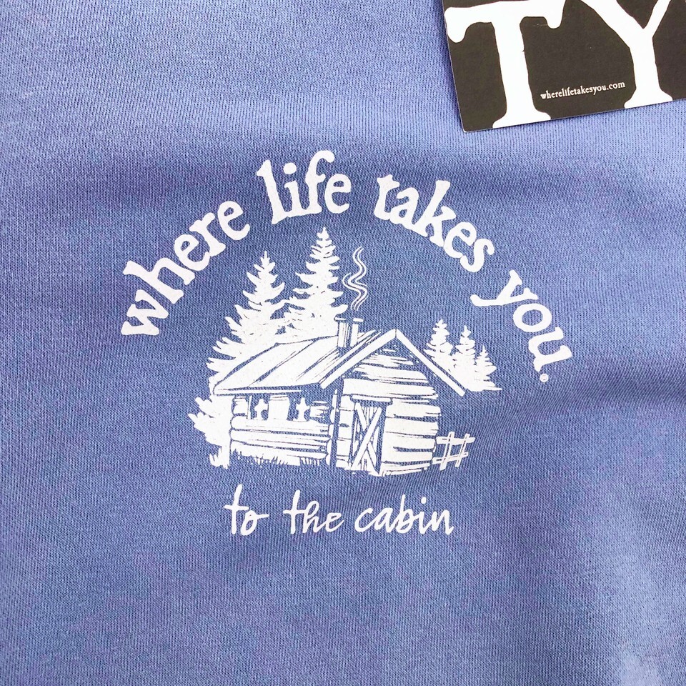 Crew neckline, "Where Life Takes You" To the Cabin, White graphics |