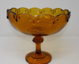 - Indiana Glass Company 1970s MCM Amber Teardrop Garland Footed Compote Bowl