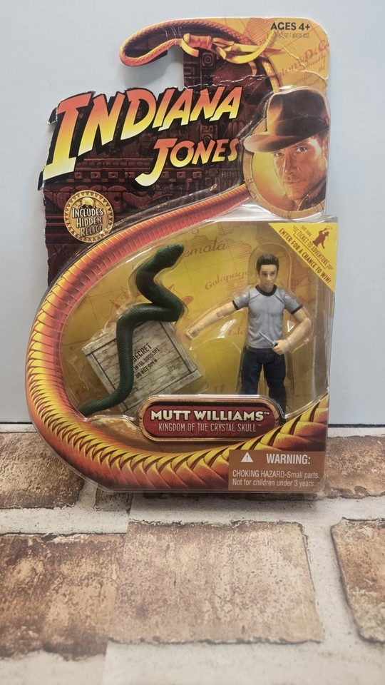The "Mutt Williams" action figure from the Indiana Jones "Kingdom of the Crystal Skull" is a 3 3/4 inch collectible made of crystal material. Packaged in original unopened packaging, this toy depicts the character Mutt Williams from the movie franchise. Produced in China in 2008, this action figure is a part of the larger Indiana Jones collection and features the artist/actor will.i.am. Perfect for fans of the Indiana Jones series, this unique and detailed action figure brings to life the thrilling adventure of the Kingdom of the Crystal Skull.