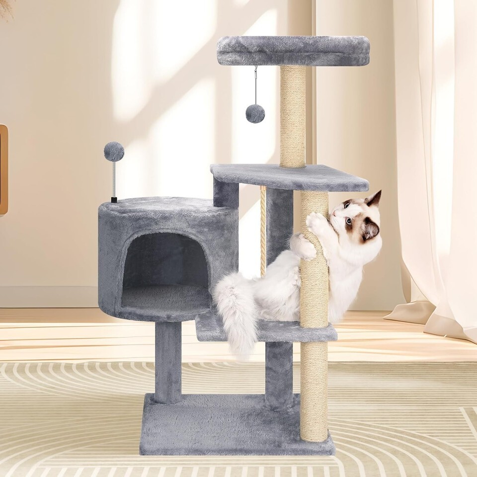 If you want to keep your furniture safe while providing your feline friend with endless entertainment and comfort, this Indoor Cat Tree is your perfect solution. Its multifunctional design caters to climbing, scratching, or simply lounging, while the three jute-covered posts encourage healthy scratching behavior away from your valuable furnishings.