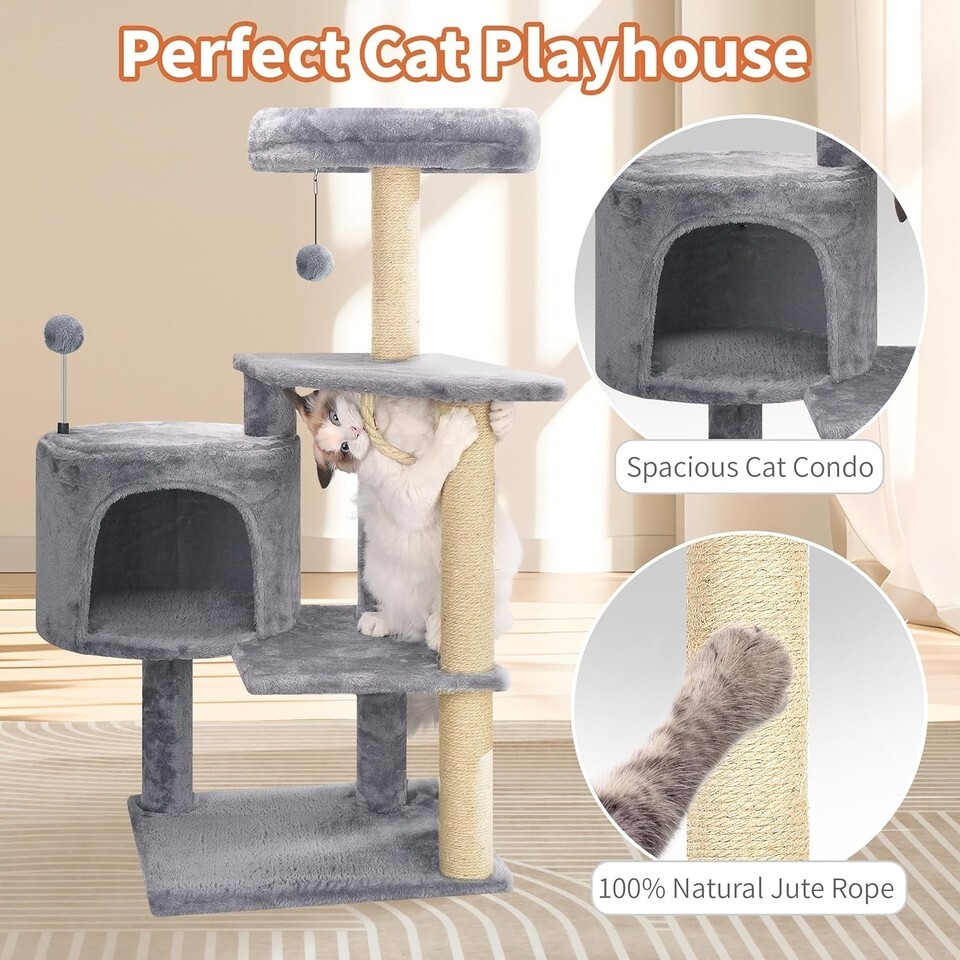 - Indoor Cat Tree with Cozy Lounge & Jute Scratching Posts - Perfect for Kittens