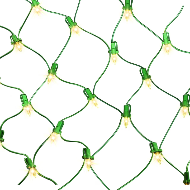 Decorate with ease using the Holiday Time Indoor/Outdoor 150-Count Incandescent Christmas Net Lights. These clear lights with green wire provide an even, radiant glow, perfect for draping over bushes, shrubs, or hedges. With a coverage area of six feet by four feet, they create a seamless and classic holiday display. The incandescent bulbs deliver a warm, nostalgic ambiance, making them ideal for both indoor and outdoor settings. Celebrate the season in timeless style with the Holiday Time Indoor/Outdoor 150-Count Incandescent Christmas Net Lights.