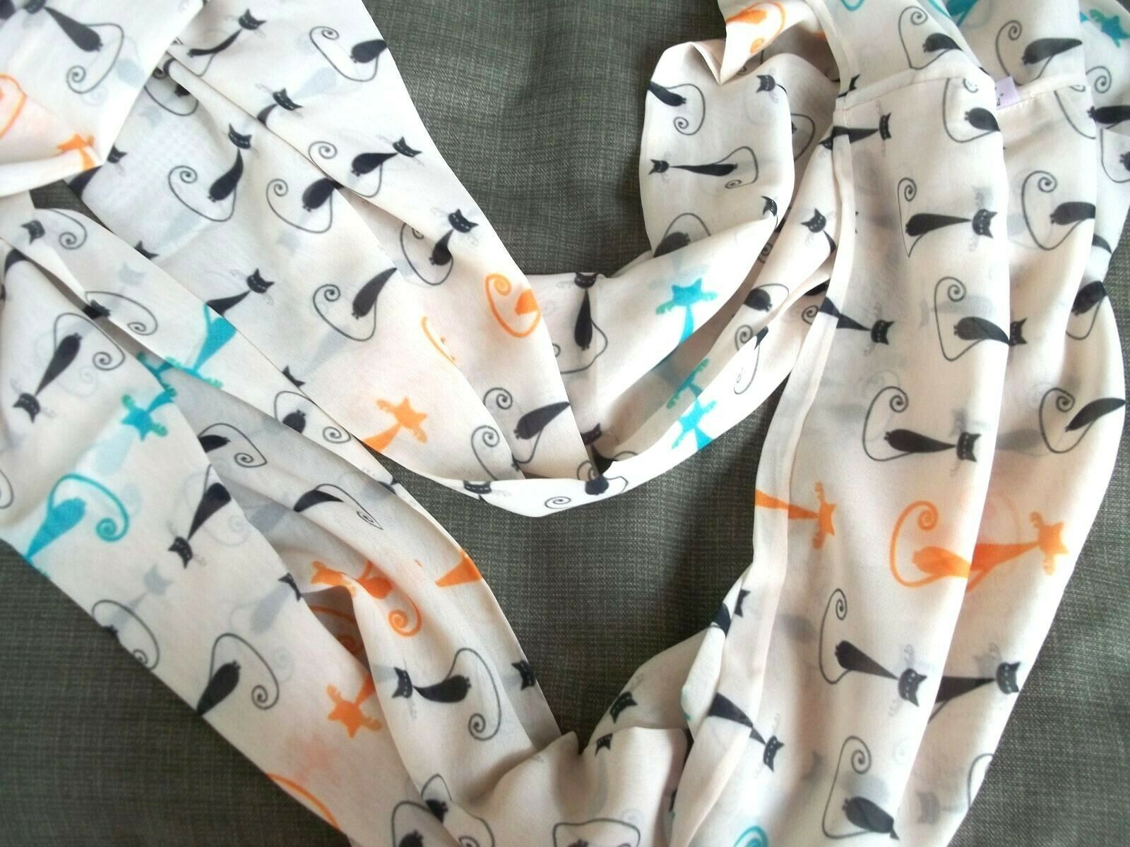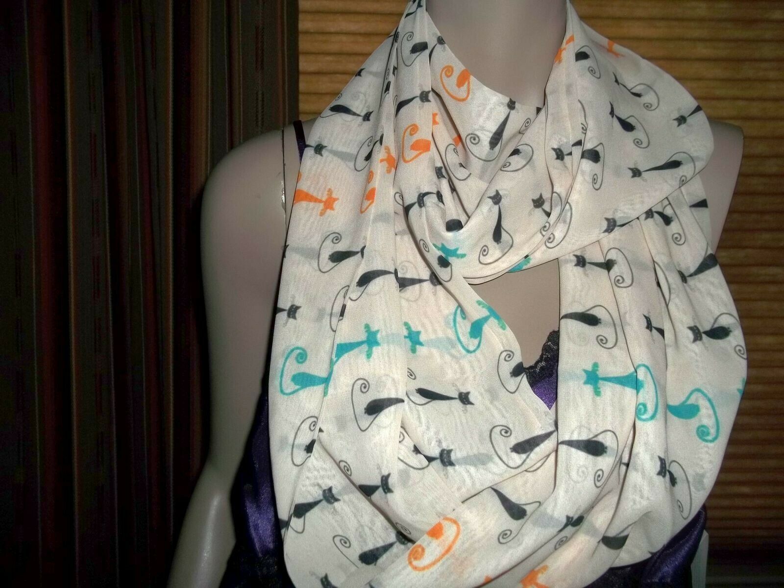 - Infinity Scarf Stylized Cats Kitties Turquoise Orange Black 64 by 12 Inches