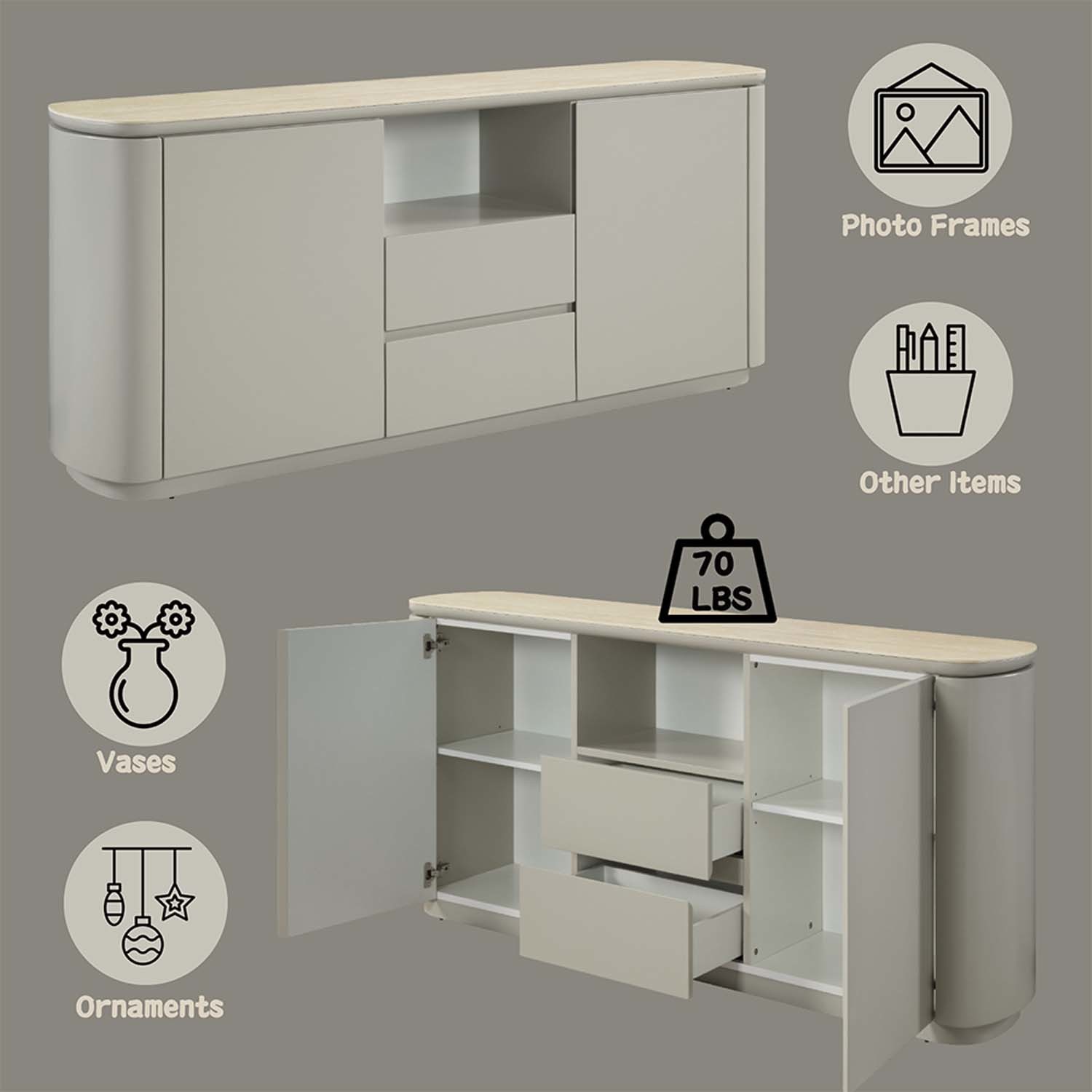 - Ingram 65" Server, Ceramic Top & Light Gray Finish