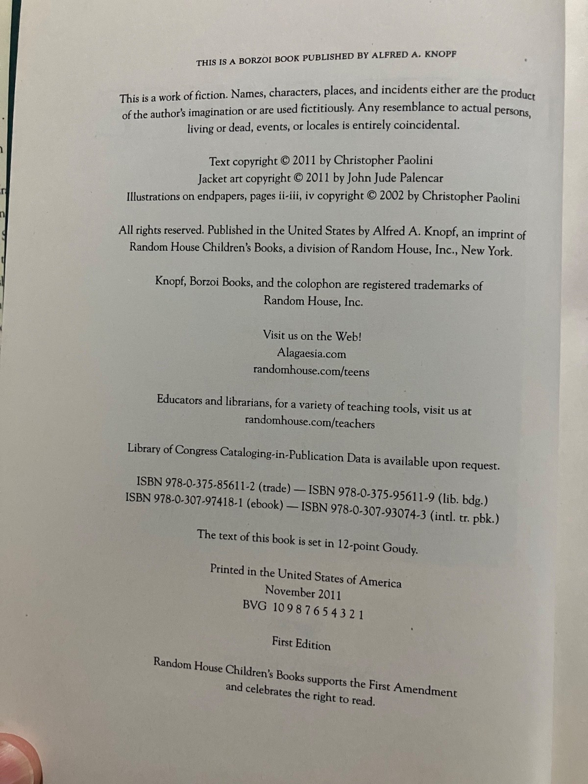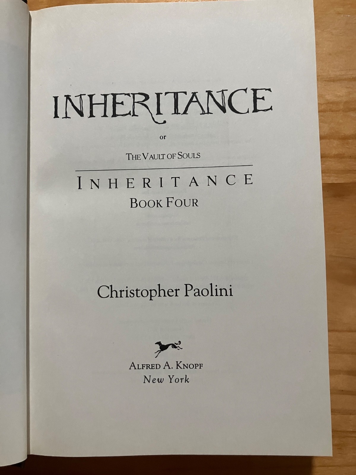 - Inheritance By Christopher Paolini Book Four Inheritance Cycle 2011 1st Ed HC DJ