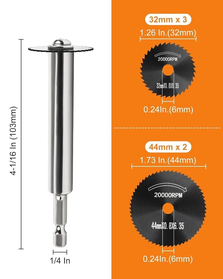 Five Replaceable Blades: Comes with 5 high-quality replacement saw blades in 32mm and 44mm sizes, offering precision cuts for various applications.