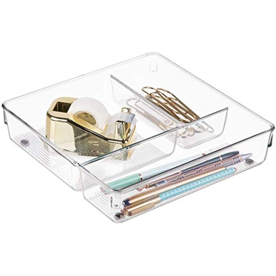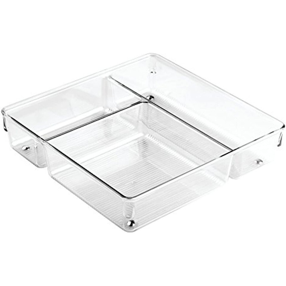 InterDesign Linus Kitchen Drawer Organizer for Silverware, Spatulas, Gadgets - 9" x 9" x 2", Clear