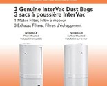 3 Genuine InterVac Dust Bags, 1 Motor Filter, and 3 Exhaust Filters in package.