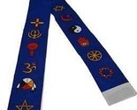 A blue white print on cotton fabric, with liner, this interfaith stole is accented with the 12 symbols of the worlds varied religions, representing harmony and universal unity. Description sheet included. 4 x 6