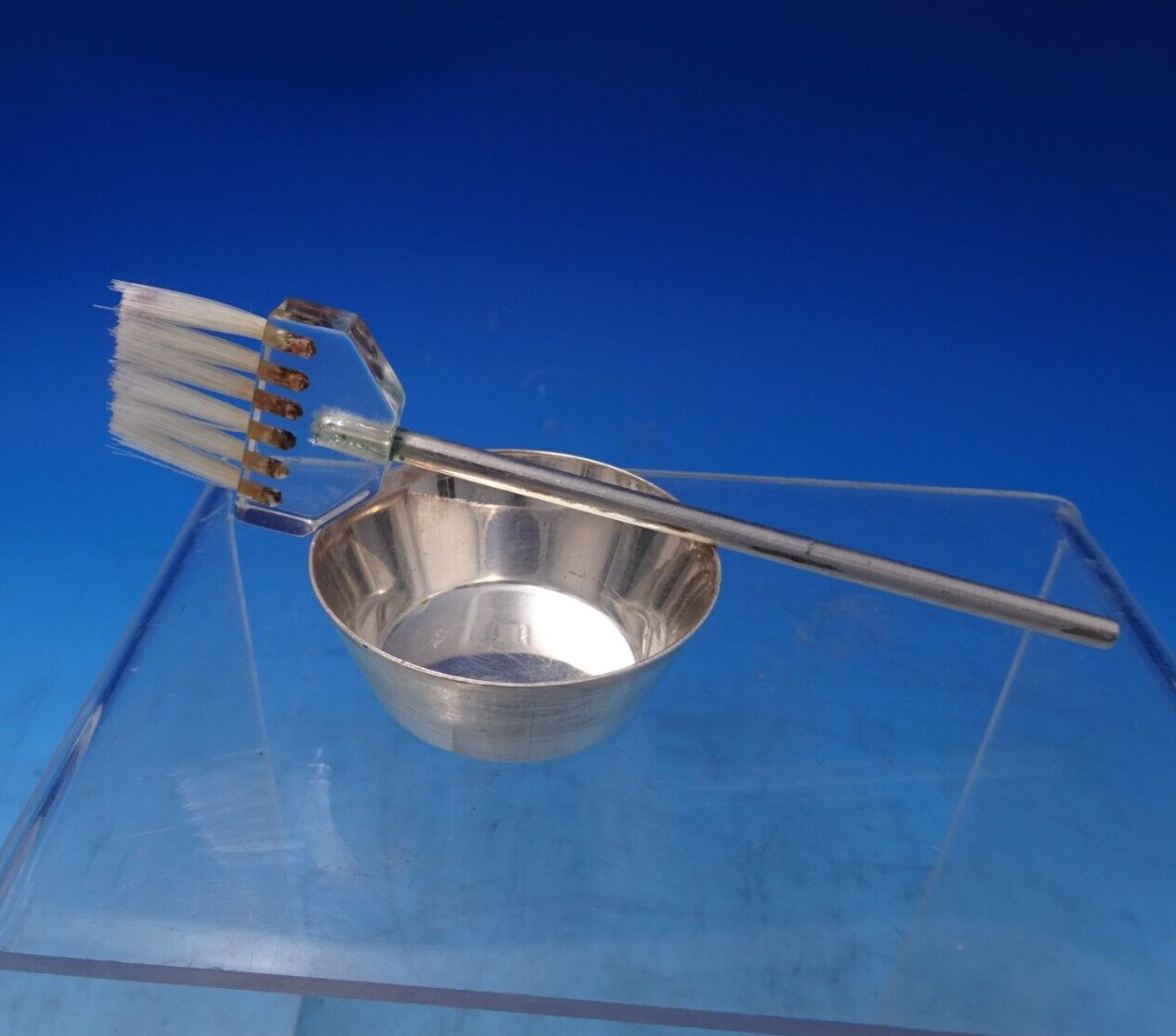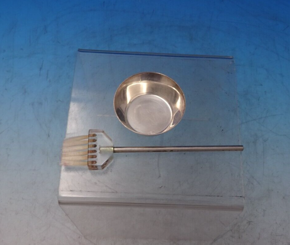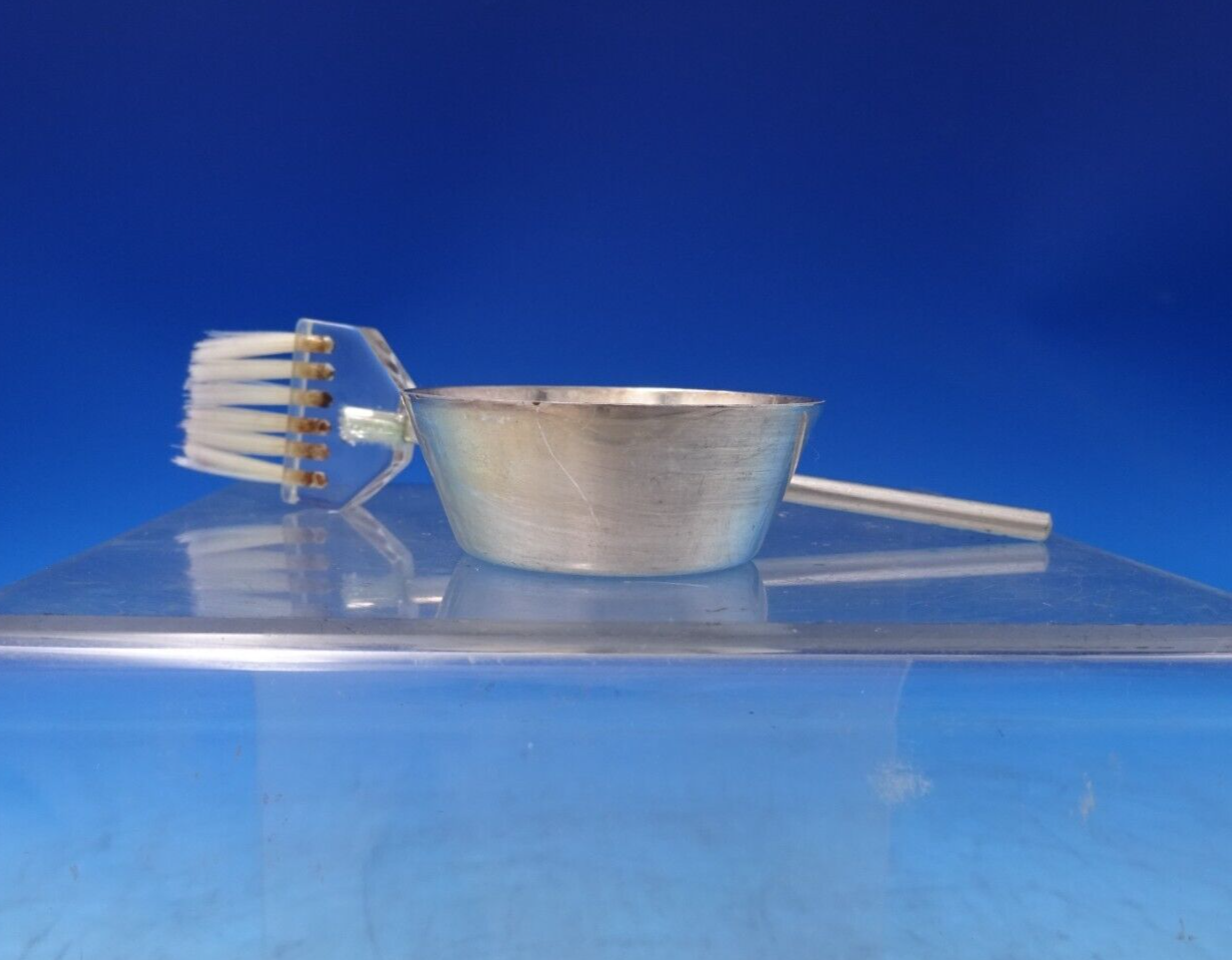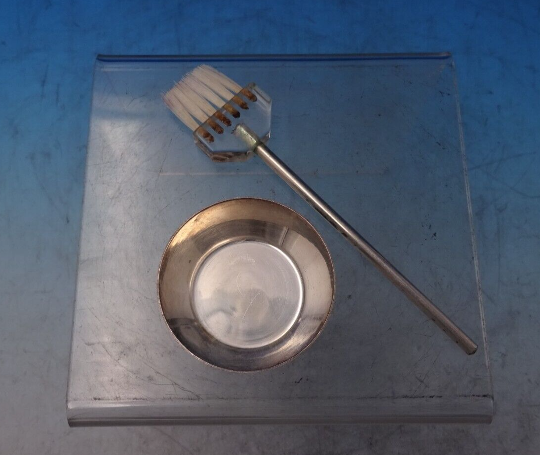 Fantastic International Silver Co silverplate lobster dish with butter brush two-piece set marked #158. The dish measures 2", and the brush measures 5". The pieces are not monogrammed and are in good estate condition as shown in the photos. Terrific!