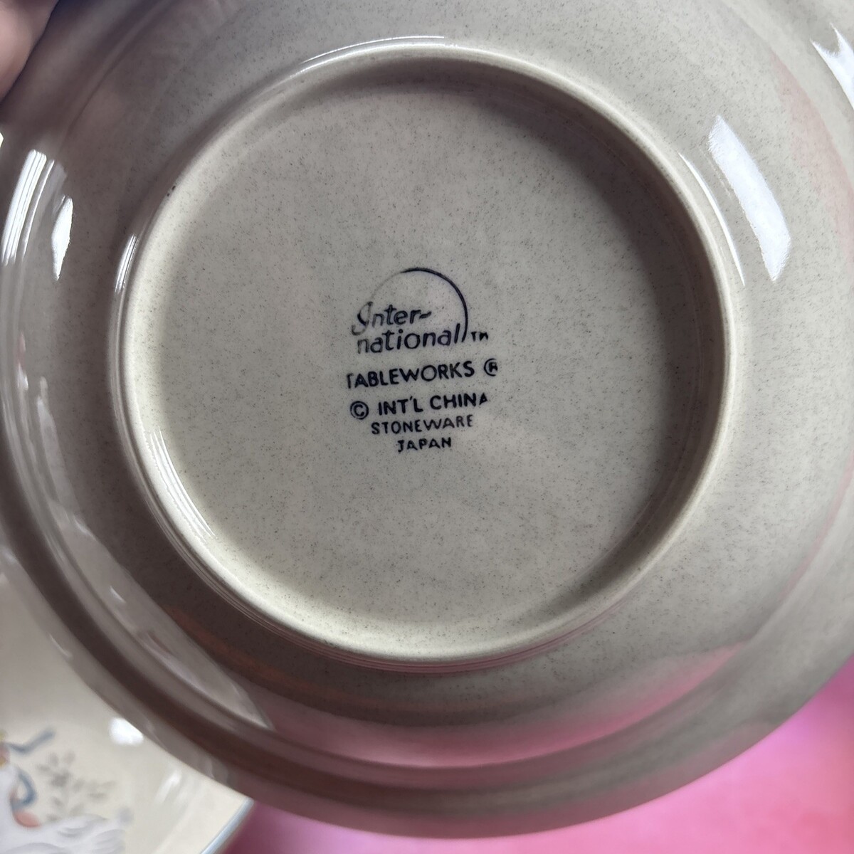 The International Tableworks Marmalade Geese Ceramic Serving Vegetable Bowl is a vintage piece of mid-century modern decor. Made in America in 1994, this round stoneware bowl features a glossy finish with a decorative marmalade pattern and colorful bird and fruit design. It is oven safe, stackable, microwave safe, and dishwasher safe, making it perfect for all occasions. With a diameter of 9 inches, this one-piece set includes a unique and charming piece for serving vegetables or snacks.