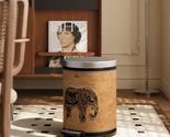 Product description: Discover elegance in everyday functionality with this vintage-inspired 14L pedal trash can. The antique bronze finish and distinctive elephant motif transform this waste bin into a sophisticated decor piece. Crafted from durable stainless steel, this 3.7-gallon capacity bin features a smooth foot pedal mechanism with a soft-close lid for quiet, hands-free operation. The brushed finish resists fingerprints while maintaining its luxurious appearance. Standing 14.6 inches tall with an 11-inch diameter, this bin includes a convenient removable inner bucket with a carrying handle for easy waste disposal. The decorative leather-textured wrap adds refined detail, making it a perfect addition to upscale kitchens, bathrooms, or office spaces where classical aesthetics meet modern convenience. The sturdy construction ensures lasting durability while the space-efficient design maintains a commanding presence without overwhelming your space.