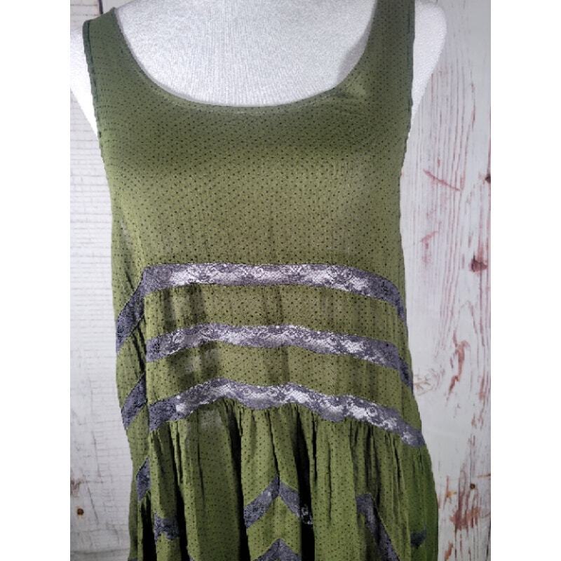 Intimately Free People Womens XS Green and Purple Top Lace Polka Dots Ruffles Tank