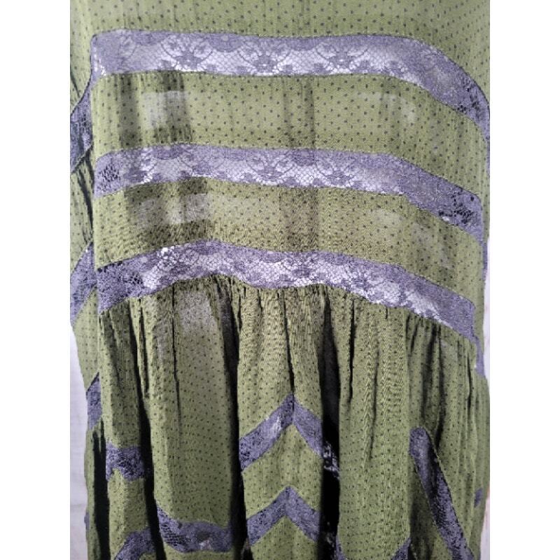 - Intimately Free People Womens XS Green and Purple Top Lace Polka Dots Ruffles