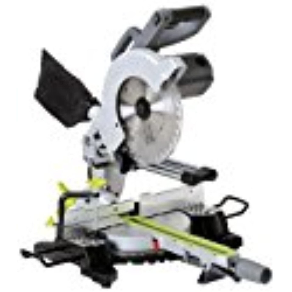 Master Mechanic 10? Compact Sliding Miter Saw is powered with a high quality, 15A motor delivering 4500 RPM to ensure top performance results with every application. Features a 45 degree bevel, durable aluminum base and efficient laser for accuracy. Manufactured with a compact sliding bar design allowing saw to be conveniently placed up against a wall. Product includes 1 clamp set, 2 extension supports, 1 spanner, 1 carry handle, 1 dust bag and 1 base lock knob.