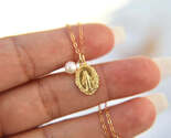 Embrace the beauty and grace of faith with this exquisite Miraculous Medal Necklace, featuring a delicate pearl accent. This necklace carries profound spiritual significance, as the Miraculous Medal was given to St. Catherine Laboure by Our Lady herself, who promised that all who wear this image will receive great graces.