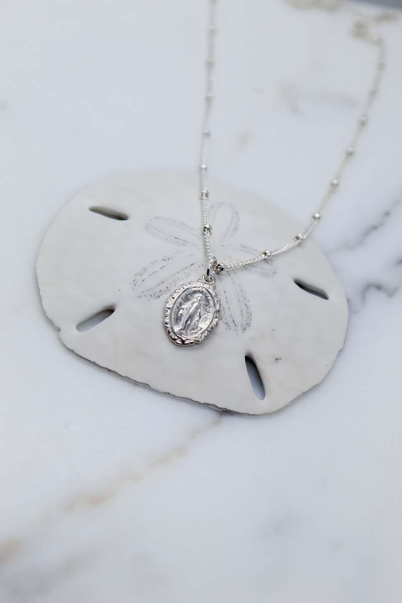 Intricate Miraculous medal necklace-Silver