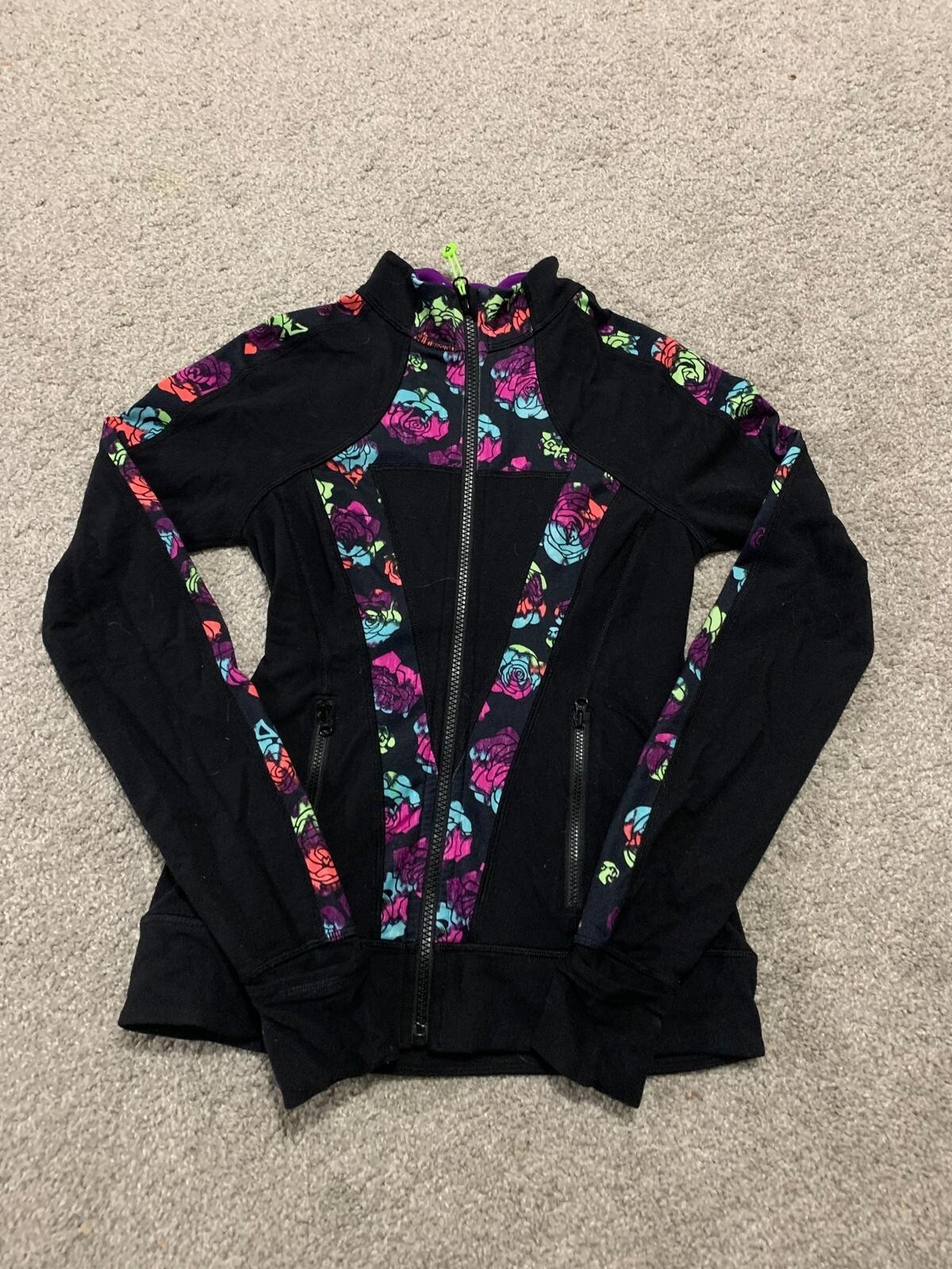 - Invivva Zip Black with Flowers Figure Skating Longsleeve Finger-cut Jacket