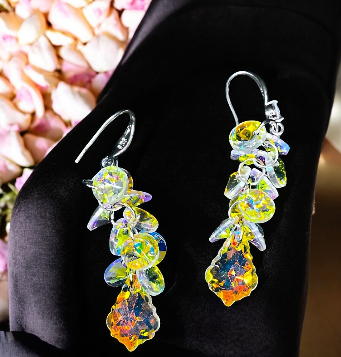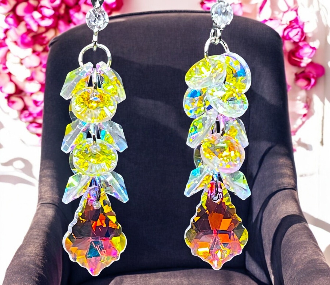 Iridescent Crystal Drop Earrings | 2” Dangle Statement Jewelry | Festival Ready