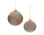 Enhance your holiday decor with the Iridescent Glass Ball Ornaments in wintry brown and beige tones. Featuring a chic iridescent finish, these ornaments bring a soft, elegant glow to your tree. Designed with traditional ball shapes and a frosted glass design, they create a timeless look perfect for any holiday setting. The delicate gold ornament cap and string hanger add a refined touch. Sold in a set of 12 pieces with two assorted sizes, these ornaments are ideal for adorning your Christmas tree, or weaving into a front door wreath or mantle garland to elevate your seasonal display.